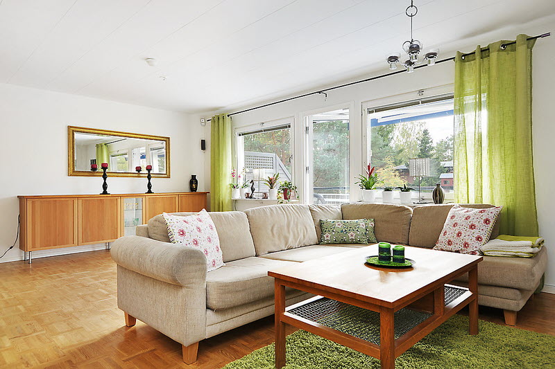 Vi har ju två vardagsrum. Det övre kommer jag visa snart, det bli utan tv. Det undre kommer bli vårt biorum. Vi har köpt ny tv, en 65 tums Samsung UHD. Sambon har också köpt på sig fler och bättre högtalare det kommer bli ett 7.1 system. Nu jävlar, vi har ju inga grannar att störa så vi kör på! Soffan blir denna fast i ett mörkare och mysigare tyg. Vi kommer också köpa en stor fotpall till och två små bord att ställa på varje sida. På bilden ser ni en spegel på väggen, där kommer tv:n vara så blir det mörkläggning på fönstrena! 🙂