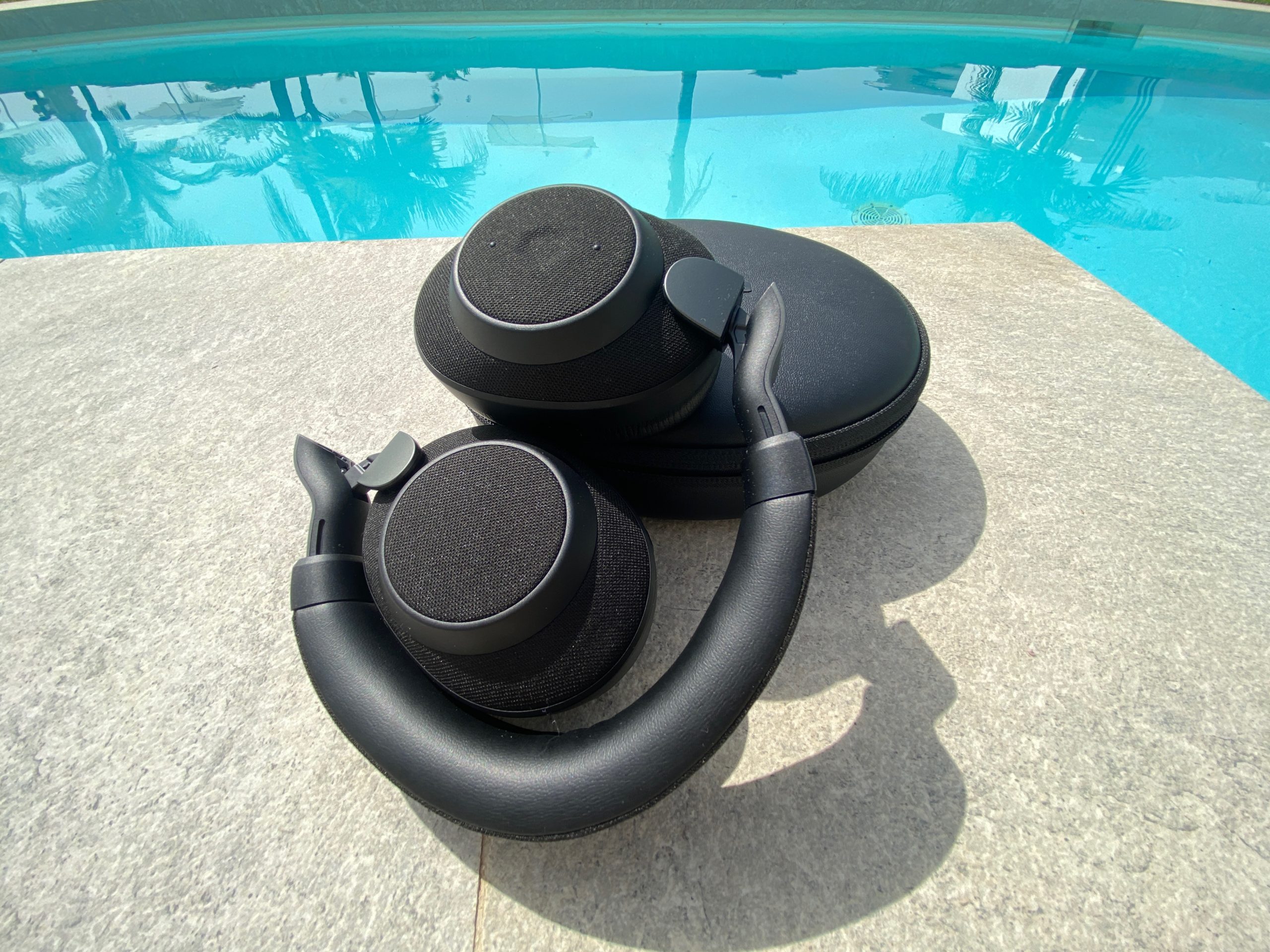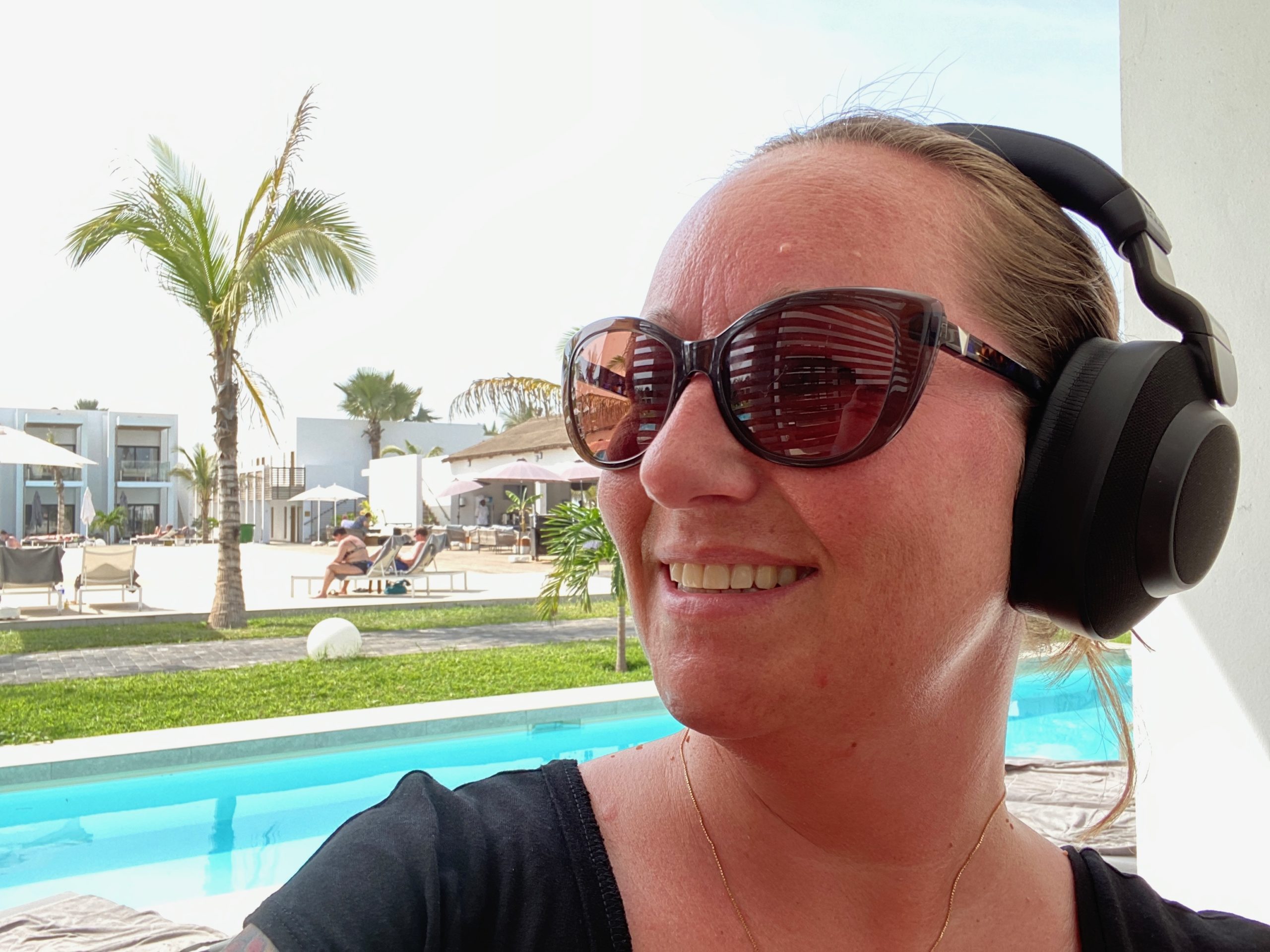 Jag tog med mig hörlurarna, Jabra Elite 85h, på flyget ner till Gambia och lyssnade även när jag låg vid poolen och det var vattengympa precis bredvid.