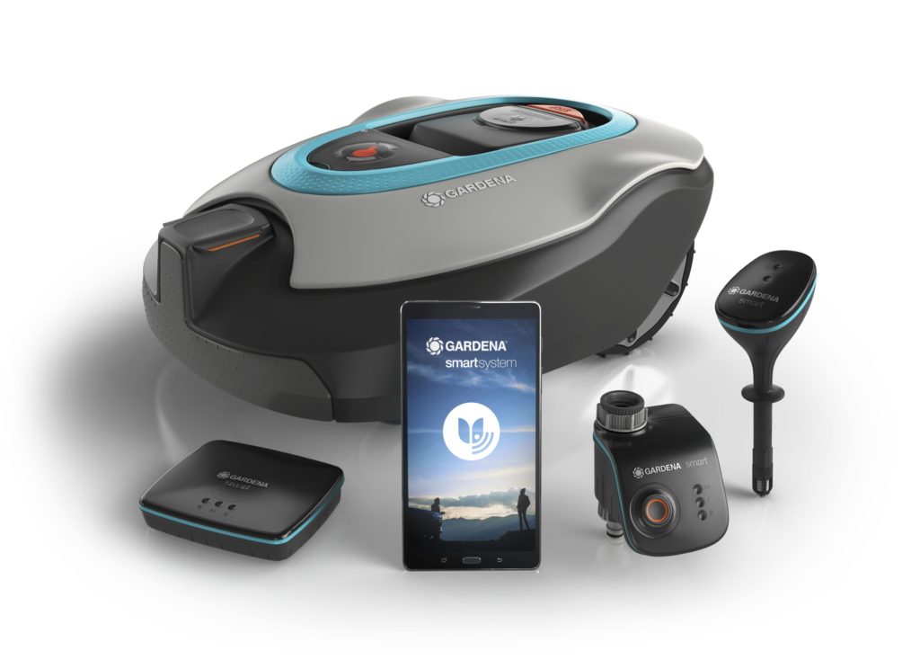 Med nya “smart system” från GARDENA klarar trädgården sig själv och sköter såväl gräsklippning som bevattning när det behövs. Har du planterat en vattenkrävande växt eller vill klippa gräset en extra gång, ändrar du enkelt inställningen för be-vattning och klippning via GARDENA smart App med internetuppkoppling i telefonen eller surfplattan.