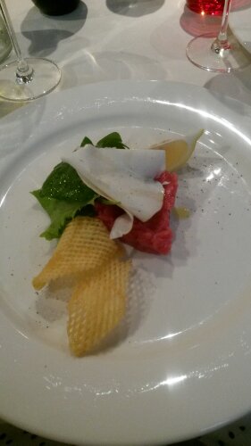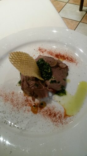 Jag höll mig till ett lokalt vitt vin medan Palle fick ett nytt vin till varje rätt. Han dricker ju rött vilket jag inte tål. Efter maten valde vi att ta en grappa som slutade i någon slags grappaprovning där vi fick först två sorter var som var magiska men helt olika. Sedan fick vi dela på ett glas med en grappa som var 15 år och var så fylld av smak. Jag kände att jag fick ta det lugnt då alkoholen började kännas rejält och jag ska köra i morgon igen. Så nu är vi på hotellet och jag ska lyckas sova så jag kan köra i morgon… Japp. Lycka till Åsa.