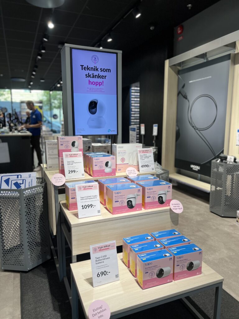I samarbete med TP-Link lanseras även speciellt märkta Rosa Bandet-förpackningar för utvalda produkter, bland annat inom säkerhet och smarta hem: Tapo C200, Tapo C520WS, Tapo C410 och Deco BE65.