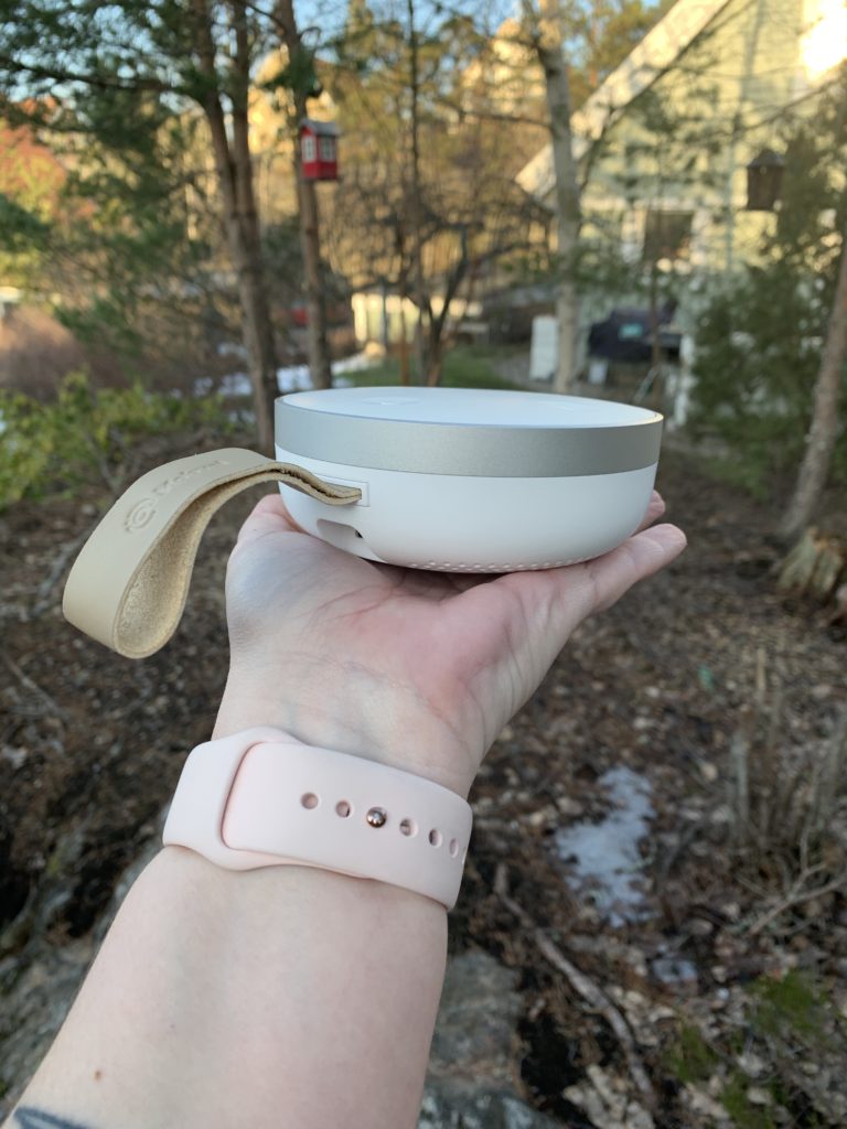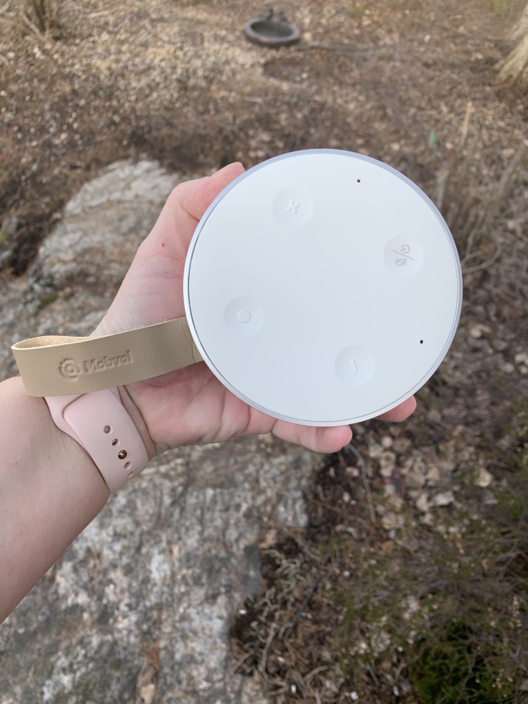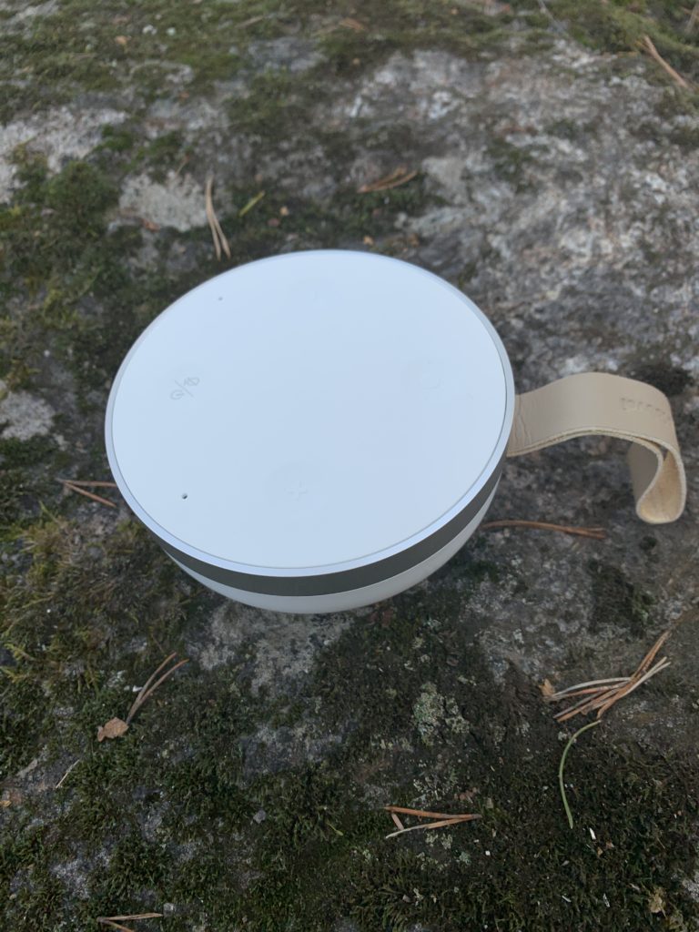 Ljudet är ju ganska dåligt om jag ska vara ärlig. Den är nog mest till för att bara tala med Google och styra saker än att lyssna på musik. Men visst, den duger att ta med på stranden eller så om man vill det. Jag provade att rocka lite blandad musik på mitt lilla rum med högtalaren på bordet bredvid mig, jag kom då fram till att den saknar bas helt. Själva högtalaren är på undersidan vilket är lite märkligt, jag menar, ljudet är ju det primära med prylen och då borde den kanske vara mer på ovansidan?!? Men, då tog jag upp den och riktade högtalaren mot mig och insåg att ljudet blir bäst genom att det studsar mot ytan högtalaren står på. Så, det var inte helt fel att den sitter där den sitter.